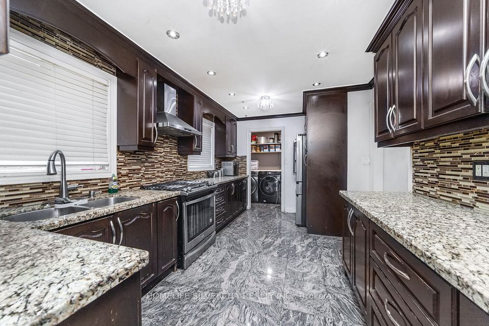 This well-maintained detached home features three spacious bedrooms on the main levels and a separate two-bedroom basement apartment with its own private entrance. Ideally located in a prime area, the property offers a double garage, a modern kitchen with granite countertops, backsplash, and stainless steel appliances, as well as a large family room on the second floor. Additional upgrades include beautifully finished washrooms, hardwood flooring throughout, and an elegant oak staircase with iron pickets, making this home both stylish and functional.